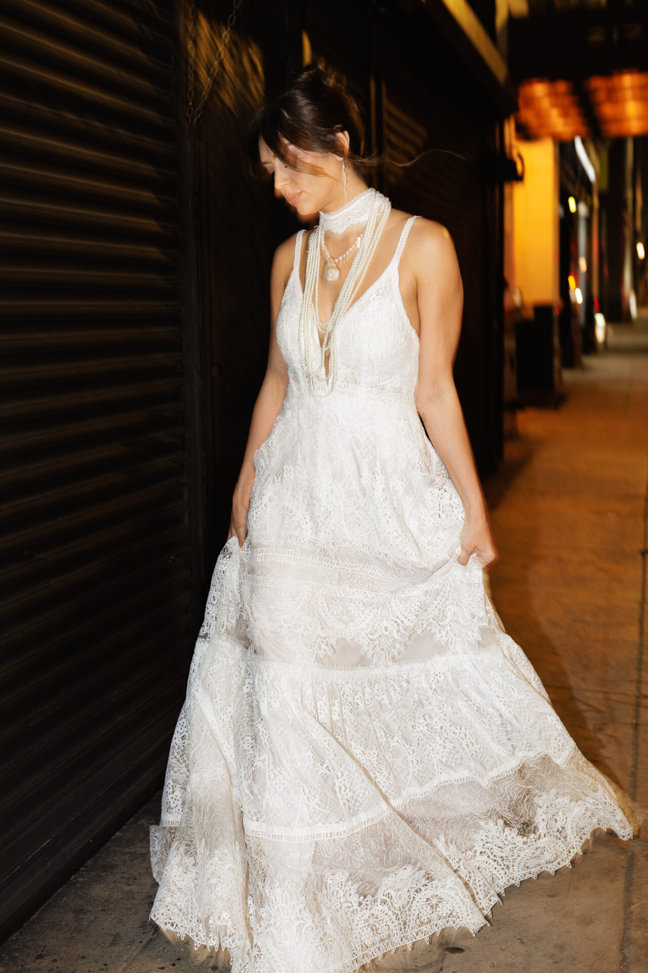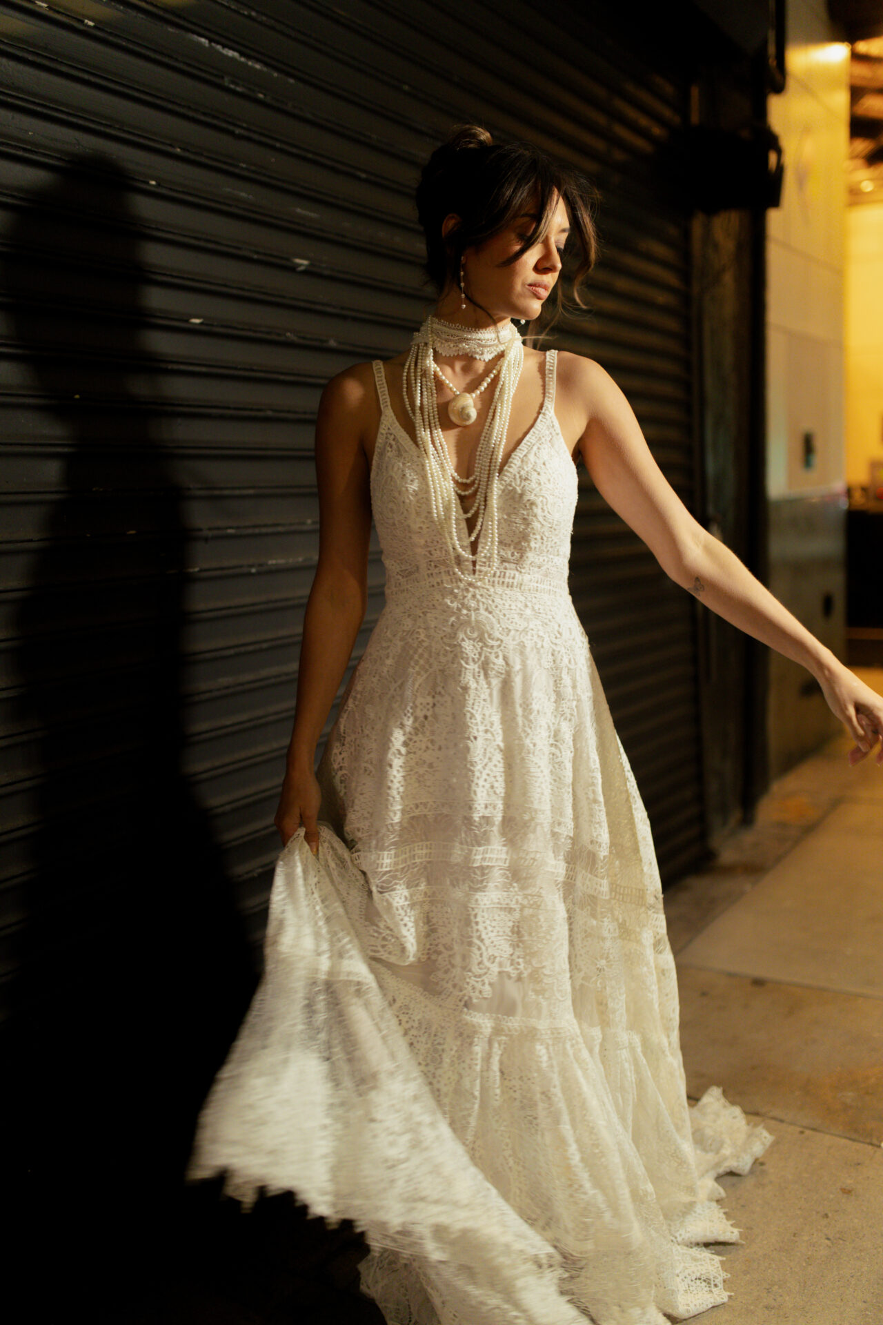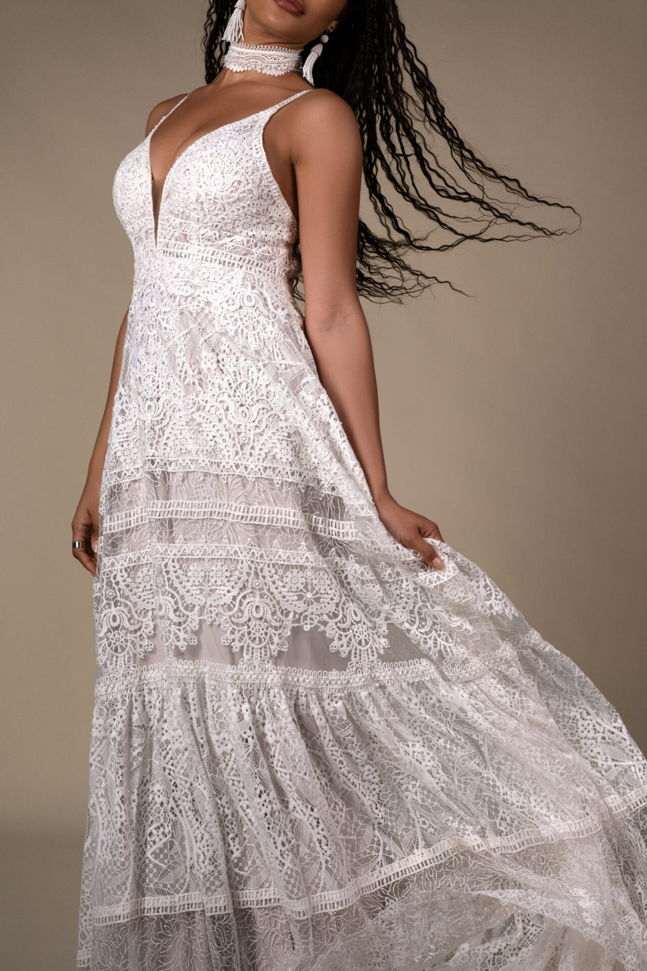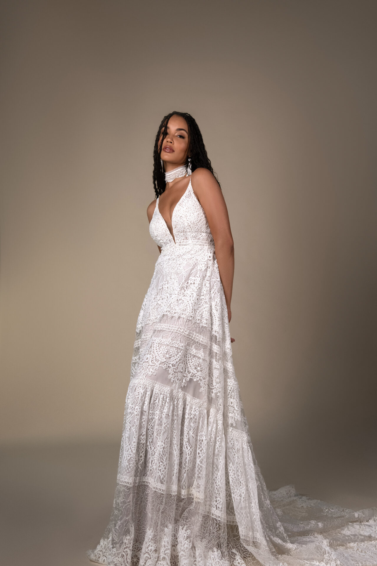Light, laid-back, and beautifully textured, Quinn brings a fresh, relaxed spin to classic lace. Crafted from tiered allover matte lace, this gown offers rich dimension while keeping an easy, effortless vibe.